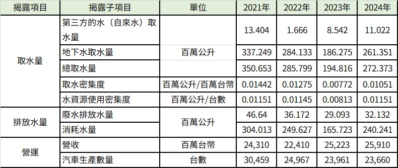註4:取水密集度分母為各年度裕隆汽車營業收入。