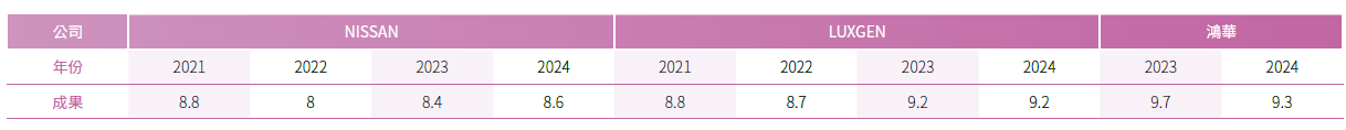 為滿足客戶需求以及提升品牌服務力,裕隆汽車依據ISO9001及IATF16949規範定期進行客戶訪談,針對品質、交期、售服3構面評價。2024年度客戶評價皆為滿意以上。另外針對客戶建議改善事項,我們定期於2024年的ISO 9001 & IATF 16949系統管理審查會議提報改善做法,完成PDCA循環,以符合客戶期許,建構長久的客戶關係。