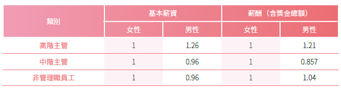 裕隆汽車員工之薪資不因其性別、種族或其他個人特質而有所不同,我們依據員工學經歷背景、專業知識技術、專業年資經驗及個人績效表現來核定其薪資水準,除了優於法規1.278倍基本薪資以及三節獎金外,我們亦根據每年公司營運狀況進行彈性變動薪酬發放,如:績效獎金、員工分紅、加發年終獎金等,以適時激勵員工士氣並留任優秀人才。