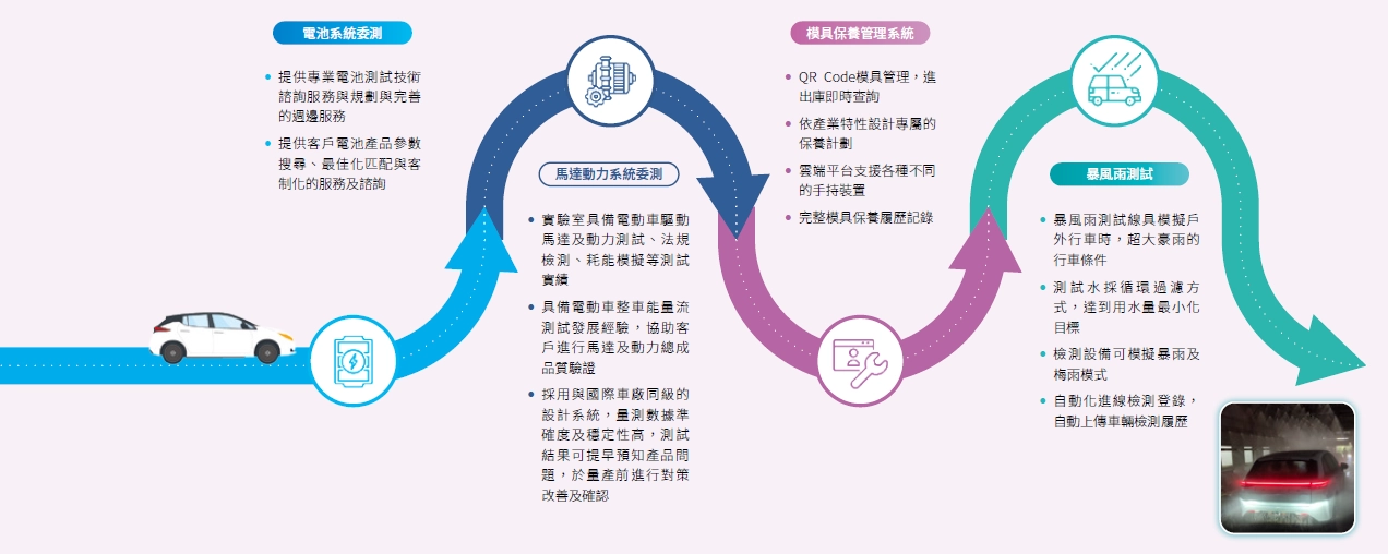 裕隆汽車除了謹慎管理車輛製造的過程,在車輛組裝完成後也透過一系列的測試系統確保車輛各項功能的穩定度: