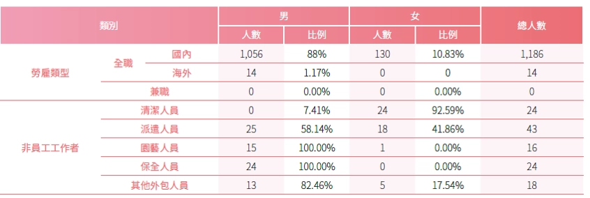 註5:除上述人員外,亦有其他類型之非員工工作者(如資收及運通人員),惟本次統計以主要類別為範圍,相關數據將視後續管理需求逐步補充。