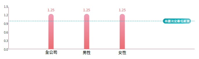 註:比率為[本國法定最低薪資:基層人員標準薪資],台灣當地2024年1月公告之基本薪資新台幣27,470元。